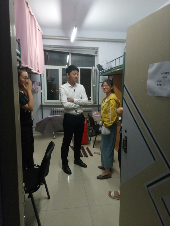 122cc太阳成集团2018级迎新工作系列报道(三)——院领导走访寝室