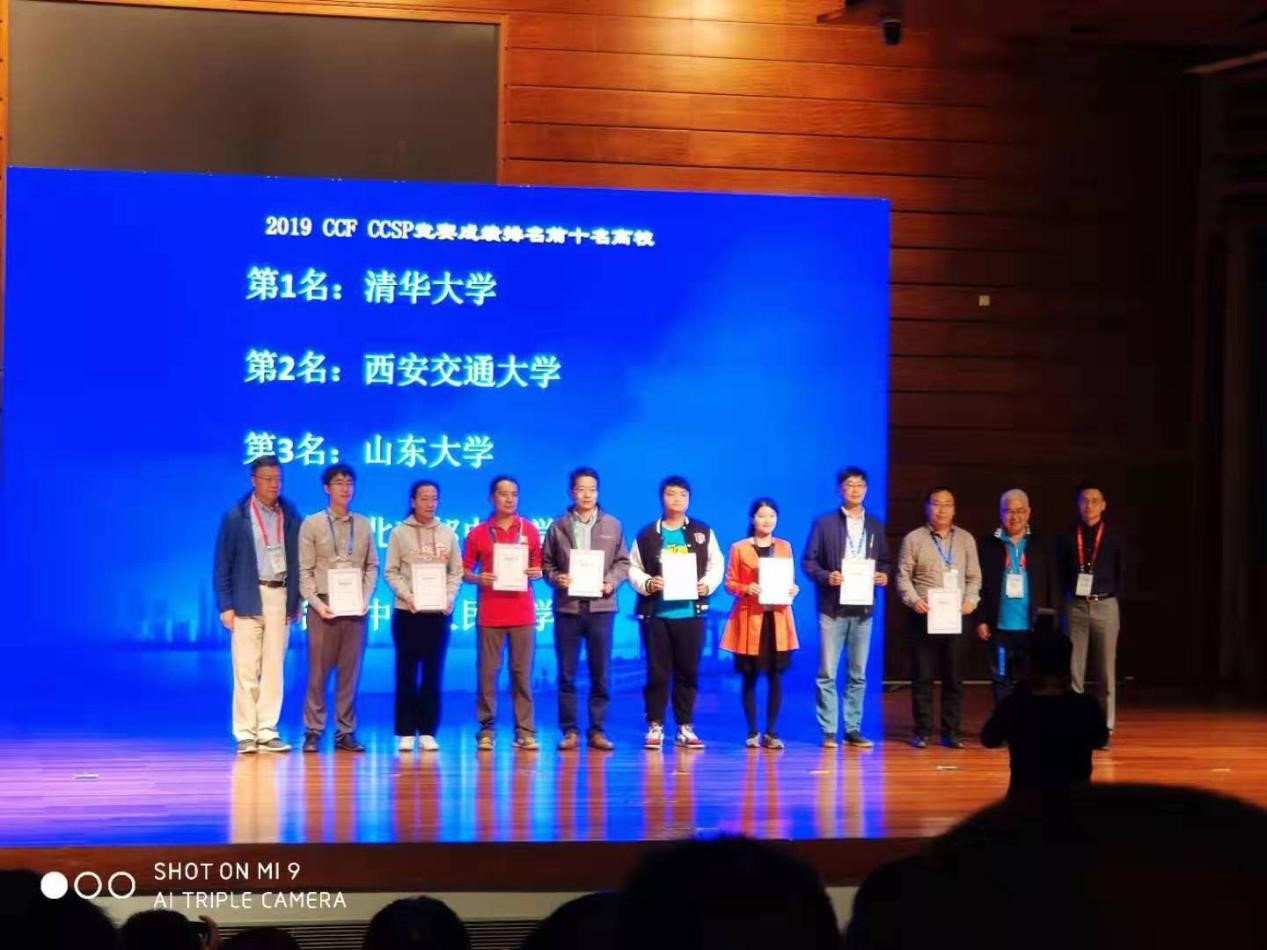 CCSP2019颁奖会于17日下午14:00-16:00在中国计算机大会(CNCC2019)现场举行。北京大学教授高文、清华大学教授郑纬民在会上致辞。高文院士表示,很高兴看到这么多高校的高水平选手参赛,期待CCSP竞赛未来能够吸引更多公司和选手参与。郑纬民院士强调CCSP竞赛是一个高水平选手较量的竞赛,注重选手的算法和计算机系统能力。赞助单位秦征、李天驰从做了讲话。CCSP技术委员会成员、清华大学助理研究员韩文弢对竞赛题目进行了讲评。