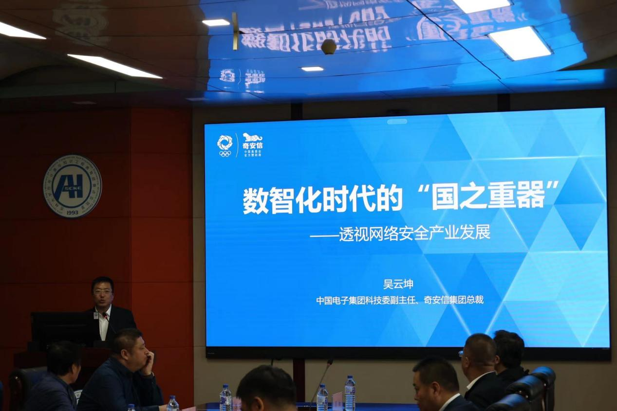 奇安信集团总裁吴云坤受邀在122cc太阳成集团中心校区王湘浩楼A515作报告,报告题目为“数智化时代的国之重器——透视网络安全产业发展”。杨博经理主持本次讲座报告,在本次讲座中,吴云坤总裁从中国数智化发展的角度切入演讲主题。现今企业的数字化和智能化都在飞速发展,企业的大数据越来越丰富,这放大了网络安全风险,同时也释放了网络安全需求。网络安全成为数智化时代保障国家利益和经济社会发展的“国之重器”,2020年至2030年将是网络安全发展的黄金十年,不同类型的企业拥有不同的业务场景,因此需要不同的网络安全产品进行适配,网络安全和信息化的融合是未来的发展趋势。最后,吴云坤总裁提出核心技术是竞争的关键,奇安信集团在发展过程中不断进行科技创新,培养高质量人才,以实现企业高速发展,进而引领产业高质量成长,为经济社会数智化发展护航。