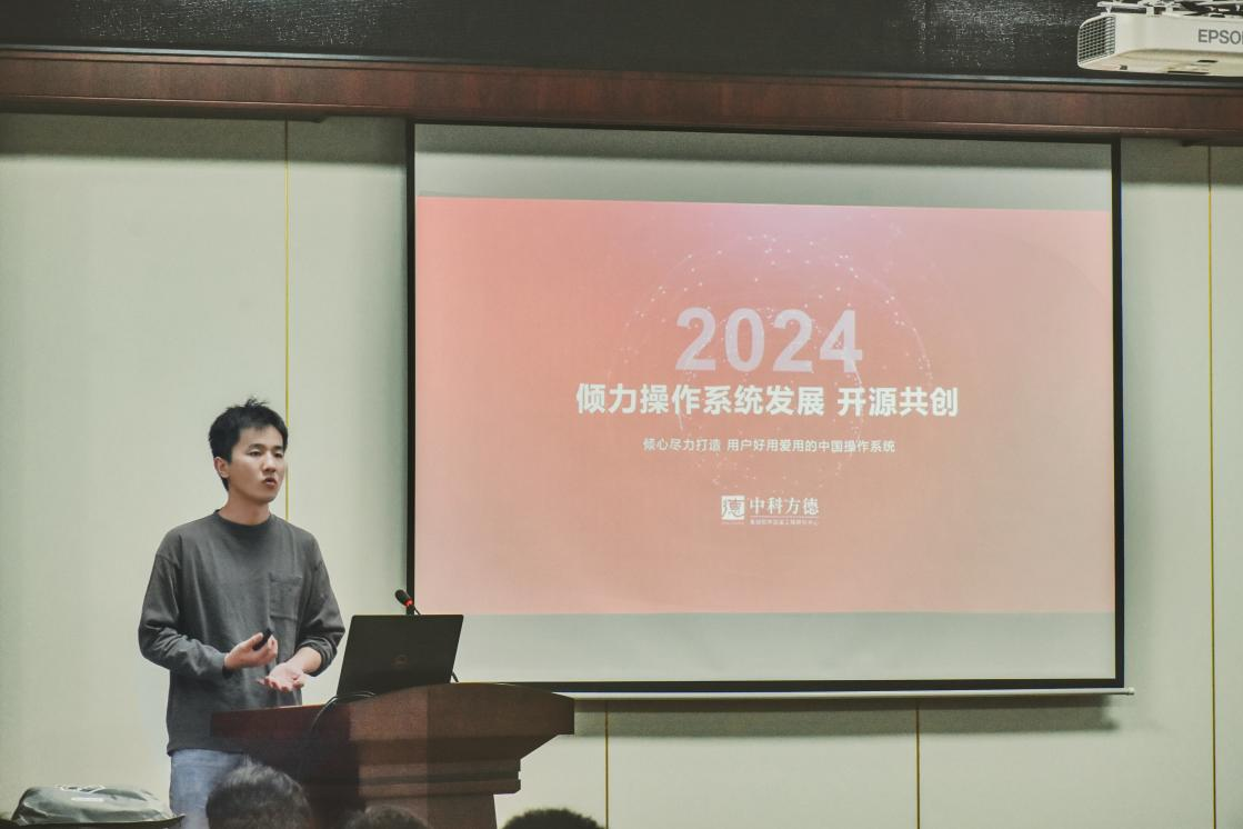 中科方德软件有限公司的产品经理程前先生,以“中科方德倾力操作系统发展,开源共创”为主题,深入解析了行业背景与政策支持,介绍了中科方德在操作系统领域的创新实践和产学研合作经验,以及开源社区的建设情况。