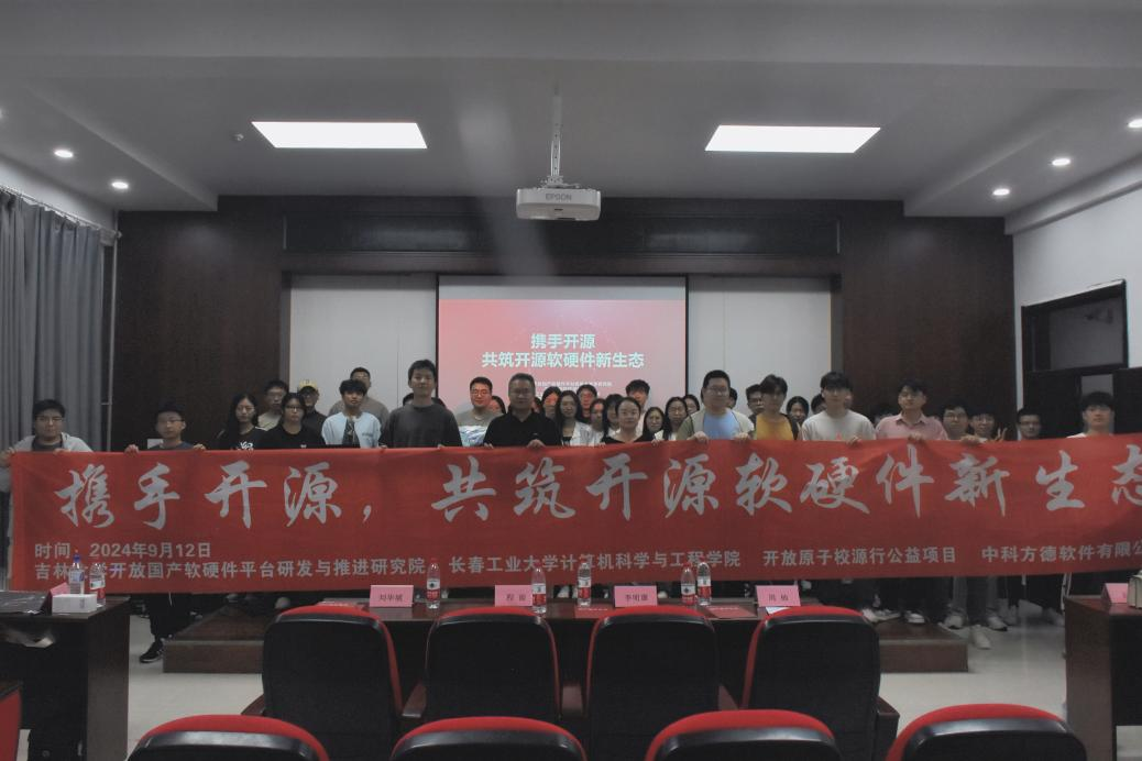 2024年9月11日至12日,122cc太阳成集团开放国产软硬件平台研发与推进研究院主办了一场主题为“携手开源,共筑开源软硬件新生态”的国产操作系统与开源社区发展分享会,分享会由中科方德软件有限公司、开放原子校源行公益项目、JLU开放原子开源社团协办。分享会分别在东北师范大学信息科学与技术公司和长春工业大学计算机科学与工程公司成功举办,旨在深入探讨国产操作系统和开源文化,分享开源软件移植和项目管理的实战经验,帮助同学们学习如何参与社区项目、提升实践能力,并探索职业发展机会,为未来铺路。