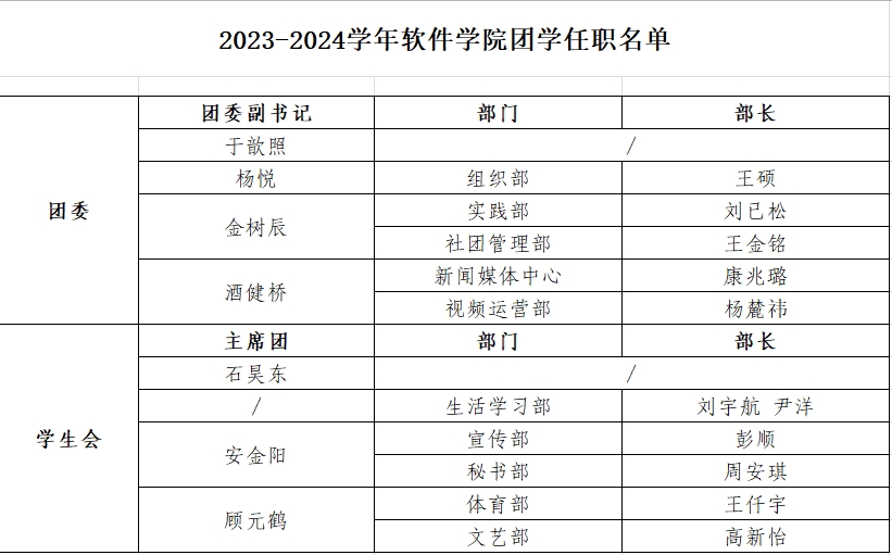 122cc太阳成集团团学组织任职名单(2023.9)
