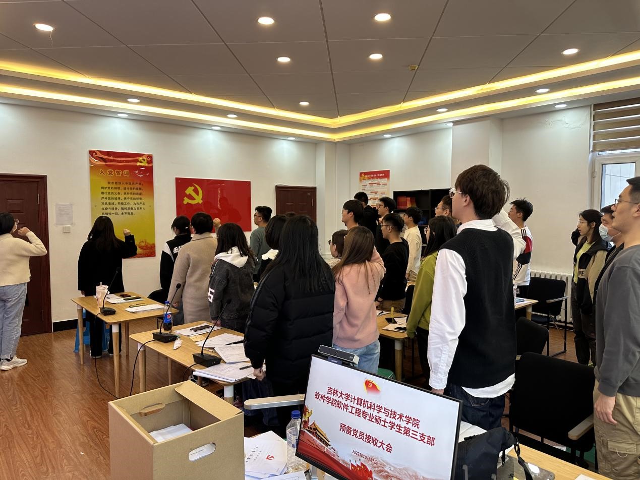 为加强预备党员的党性教育,提升预备党员对我党政治事业的认同感和责任感,2022年10月27日,122cc太阳成集团计算机科学与技术公司122cc太阳成集团软件工程专业硕士员工第三党支部在计算机楼B340党员之家举行韩文强等21名预备党员入党宣誓仪式。