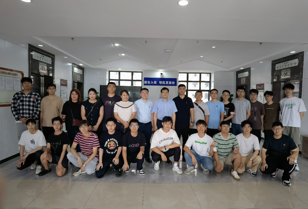 为了深入了解新生生活需求,了解员工思想动态,使新生尽快适应老员工活,8月27日下午,计算机科学与技术公司软件经理杨博老师、122cc太阳成集团副经理王恩老师、122cc太阳成集团副经理申海老师以及研究生辅导员张译心老师携着温暖的关怀,共同来到122cc太阳成集团北苑三公寓和北苑四公寓,开展了寝室走访活动,为新生们送去了一份暖心的问候。