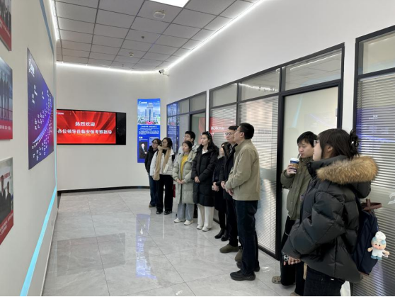 师生一行首先在公司展厅进行了参观学习。在工作人员的引导与讲解下,直观了解了安恒信息自2007年创立以来的发展历程,了解到其参与的大型会议赛事、大型攻防演练项目案例,以及与各政府、企业合作的智慧城市运营、网络数据安全保护项目。紧接着来到智慧城市运营中心,工作人员通过展厅大屏幕简单介绍了公司数据流通利用、安全查询分析、隐私计算、AI安全态势感知等前沿技术业务和平台,生动展现了企业在AI终端防护、云安全等领域的技术实力。