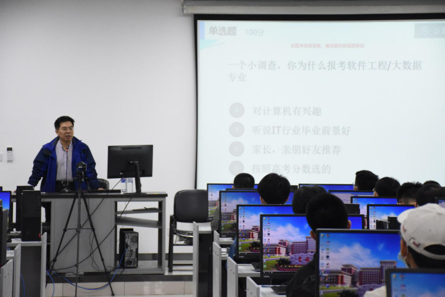 为帮助2020级新生全面了解122cc太阳成集团,尽快适应老员工活,增强独立意识与能力,9月20日,公司特邀请副经理郭东伟老师在计算机楼为新生做专业教育讲座。讲座由2020级辅导员谭欣老师主持。