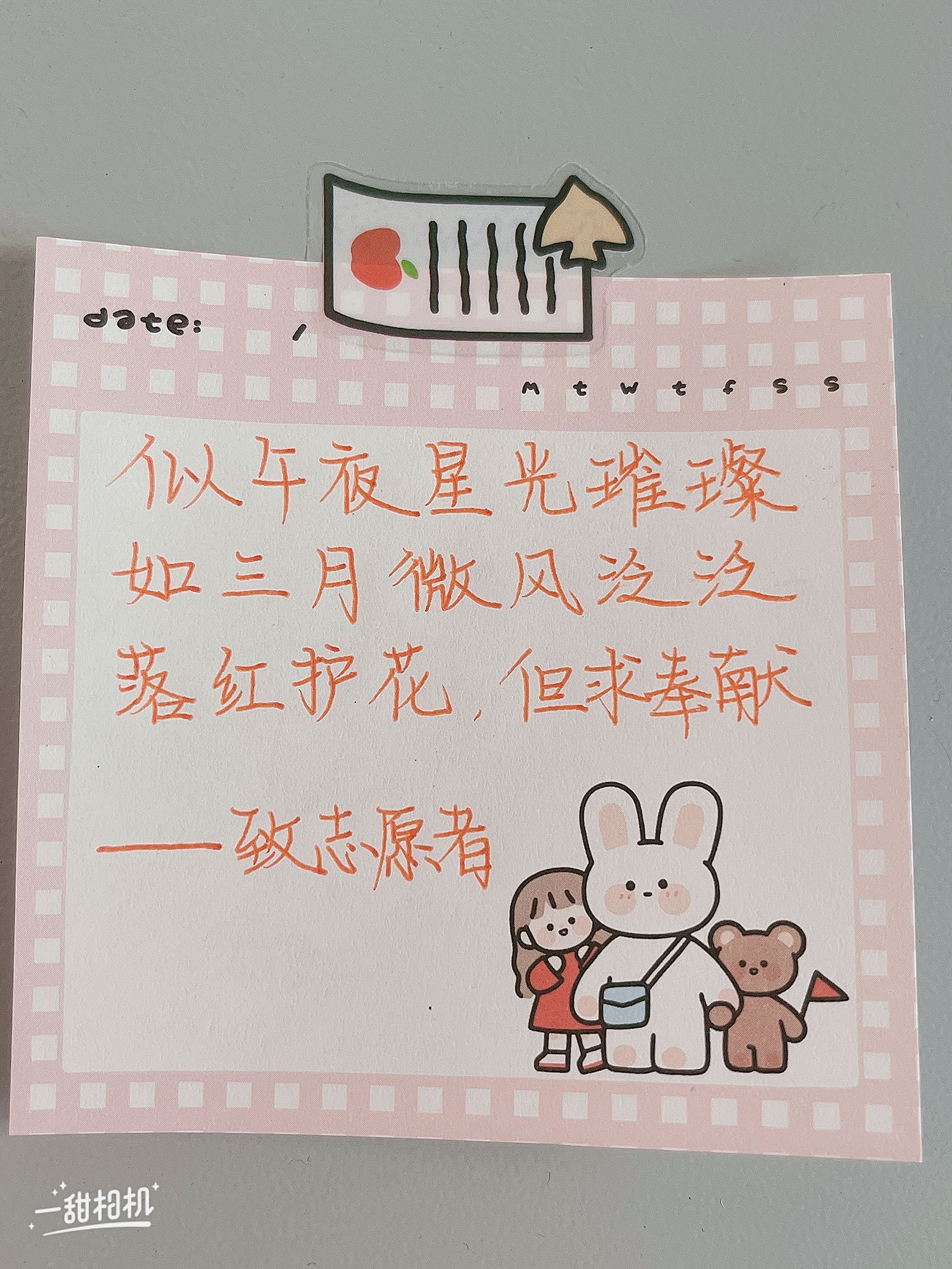 三月,一场突如其来的疫情让校园生活发生了巨大变化,寝室实行封闭式管理,许多员工主动担当校园防疫志愿者,“逆行”向前,积极投身疫情防控工作,为广大同学提供了可靠的后勤保障。为积极响应公司共抗疫情的号召,122cc太阳成集团员工会生活部于4月5日举办了寝室寄语志愿者活动,为同学们展示寝室文化、向奔赴在抗疫前线的志愿者们表达感谢与敬意搭建了平台。