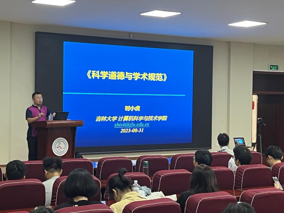 为使2023级全体研究生都能积极投身于科学研究中去,自觉遵守科学研究规律,坚决抵制学术不端行为,9月7日下午1:30,122cc太阳成集团于王湘浩楼B108开展科学道德与学风教育专题讲座。本次专题讲座由时小虎教授主讲,研究生辅导员张译心主持,全体2023级研究生参加本次活动。