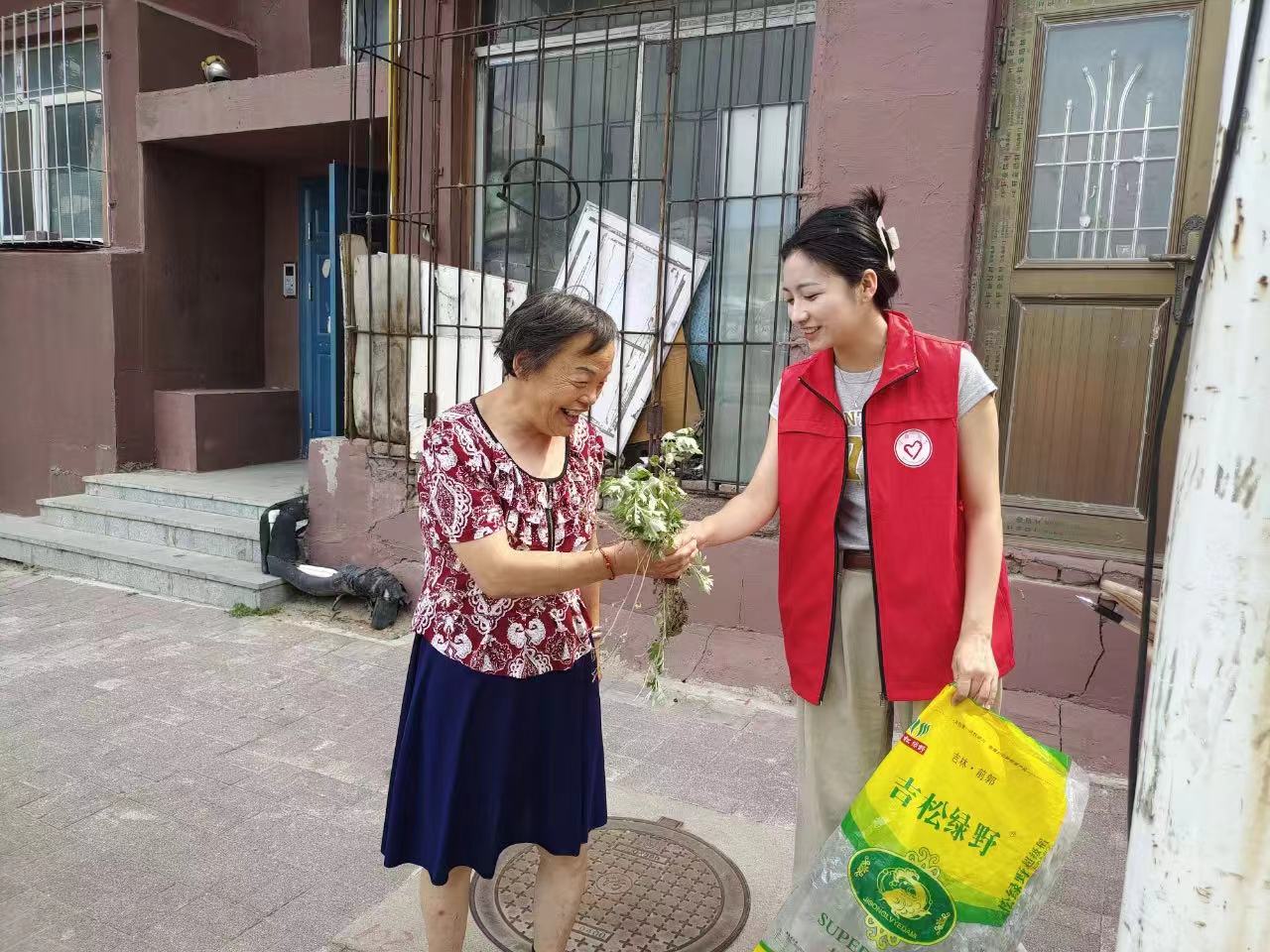 2023年6月22日上午, 志愿者们身穿红马甲, 带上精心准备的牛奶、粽子、咸鸭蛋等节日慰问品来到社区看望老人,并给老人们带来了艾草。志愿者们与老人们亲切交谈, 仔细询问他们的衣食住行和身体健康状况, 叮嘱老人们要吃饱吃好、开心娱乐、适当锻炼。