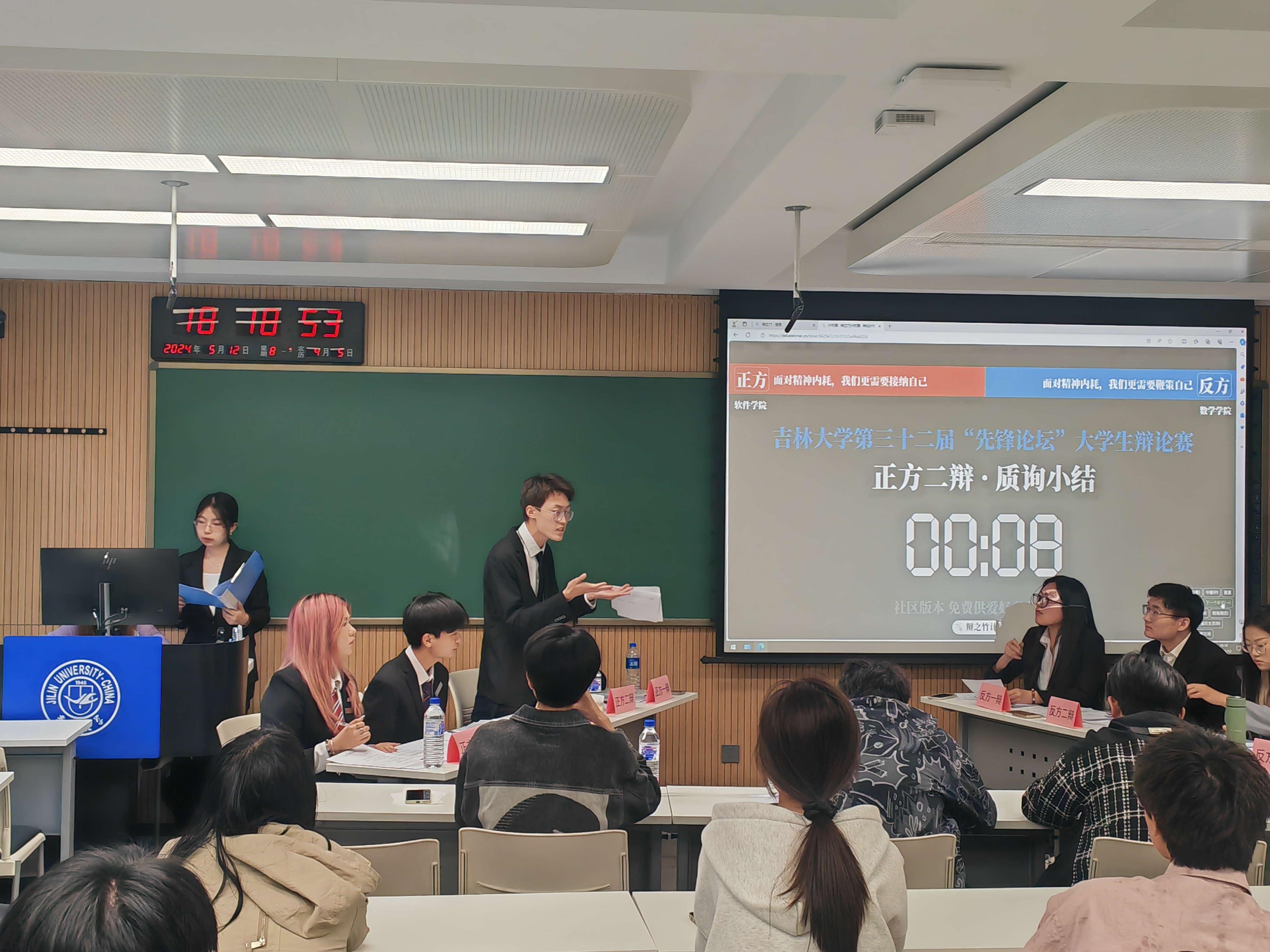 在5月13日与5月20日进行的小组赛中,122cc太阳成集团与数学公司就“面对精神内耗,我们更需要接纳自己/鞭策自己”这一辩题展开辩论。公司先后持正方和反方与数学公司进行对战,对辩题进行了充分的讨论。5月13日的比赛中,公司以3:6的比方暂时落败;在5月20日的比赛中,公司以1:8的比分赢得比赛,陈峻权同学获得单场最佳辩手,最终公司成功晋级16强。