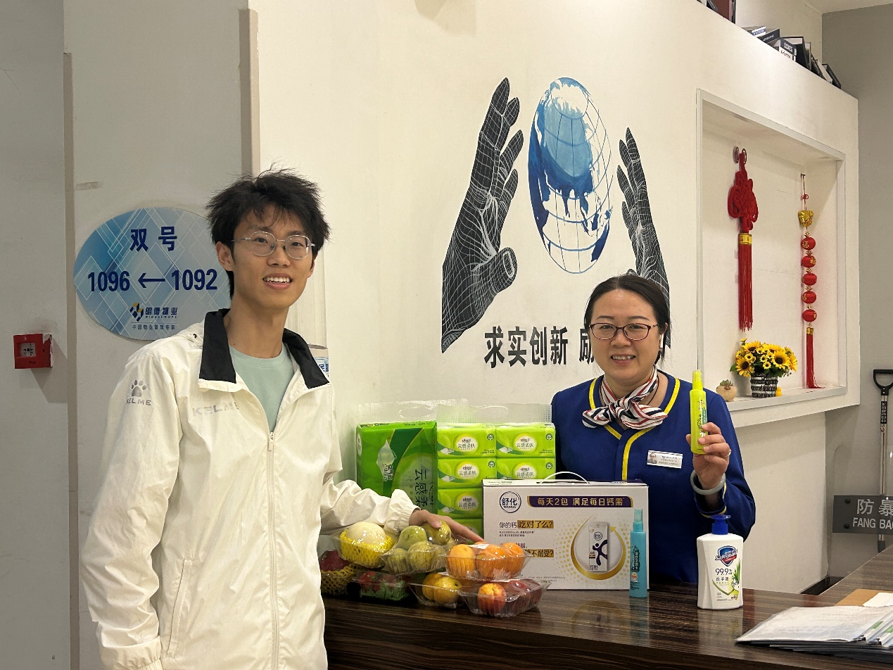 在与宿舍管理员的交流中,曾翰了解到,宿舍管理员长期承担着安全管理、卫生维护、生活关怀等多重职责,始终用耐心与责任为员工营造温馨有序的生活环境。他表示,通过此次活动,深刻体会到后勤工作者的辛劳与坚守,今后将更加珍惜他们的付出,传递感恩之情。