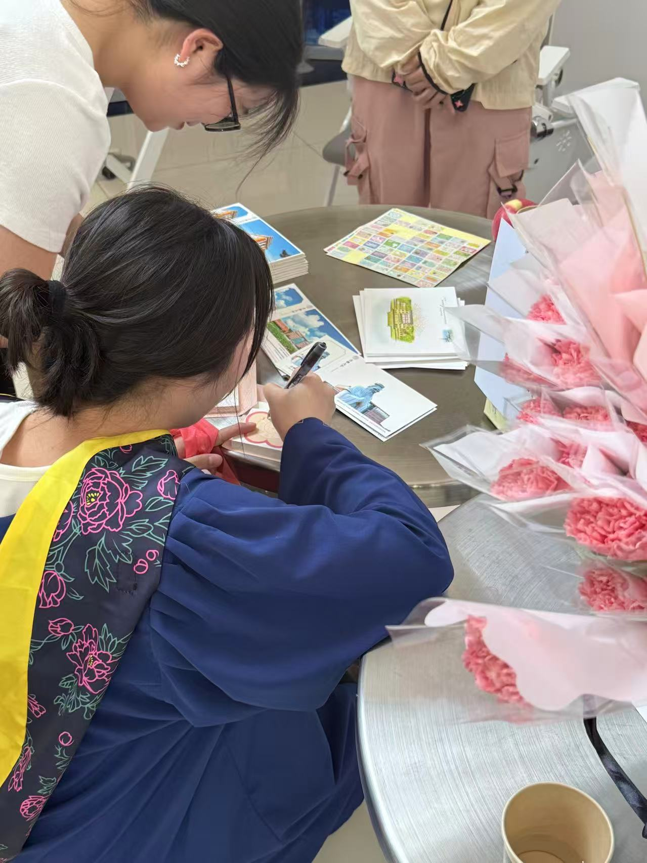 活动当天,在志愿者的引导下,同学们踊跃参与,现场气氛热烈。有人回忆起在实验室通宵攻关的灯火,有人憧憬着职场代码生涯的新篇章。花朵形状的便利贴逐张贴上展板,渐渐勾勒出青春记忆的轮廓。物资发放不仅是物品的传递,更让在校生提前感受“毕业”的氛围,在跨年级互动中,悄然凝聚起校园的共同记忆。