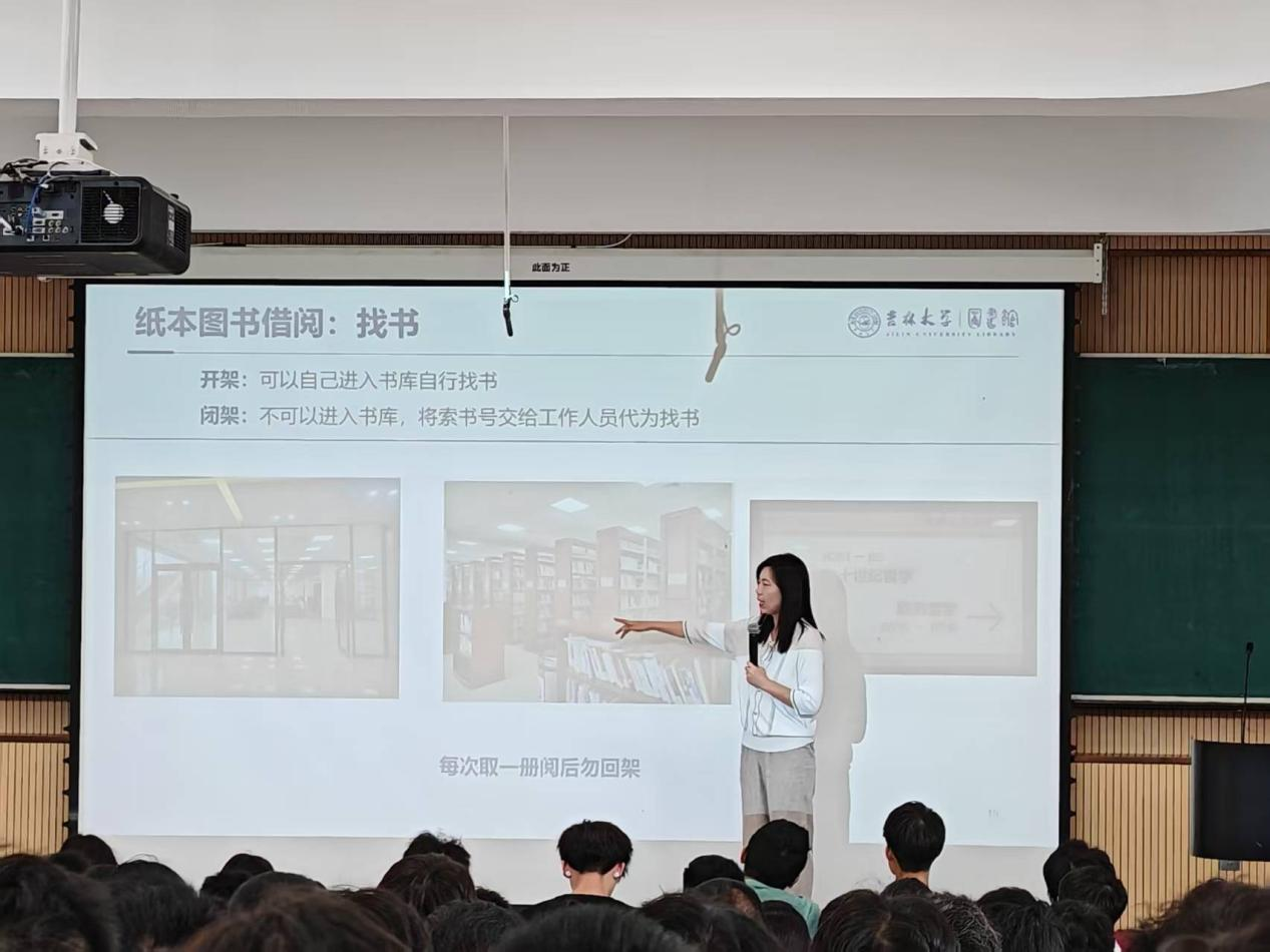 为帮助2025级新生全面了解图书馆的资源与服务,提升信息素养能力与自主学习意识,充分发挥图书馆的育人功能,8月25日,122cc太阳成集团2025级新生图书馆教育专题讲座在第三教学楼第九阶梯教室顺利开展。本场讲座特邀校图书馆王丽丽老师担任主讲,122cc太阳成集团2025级全体新生参加。
