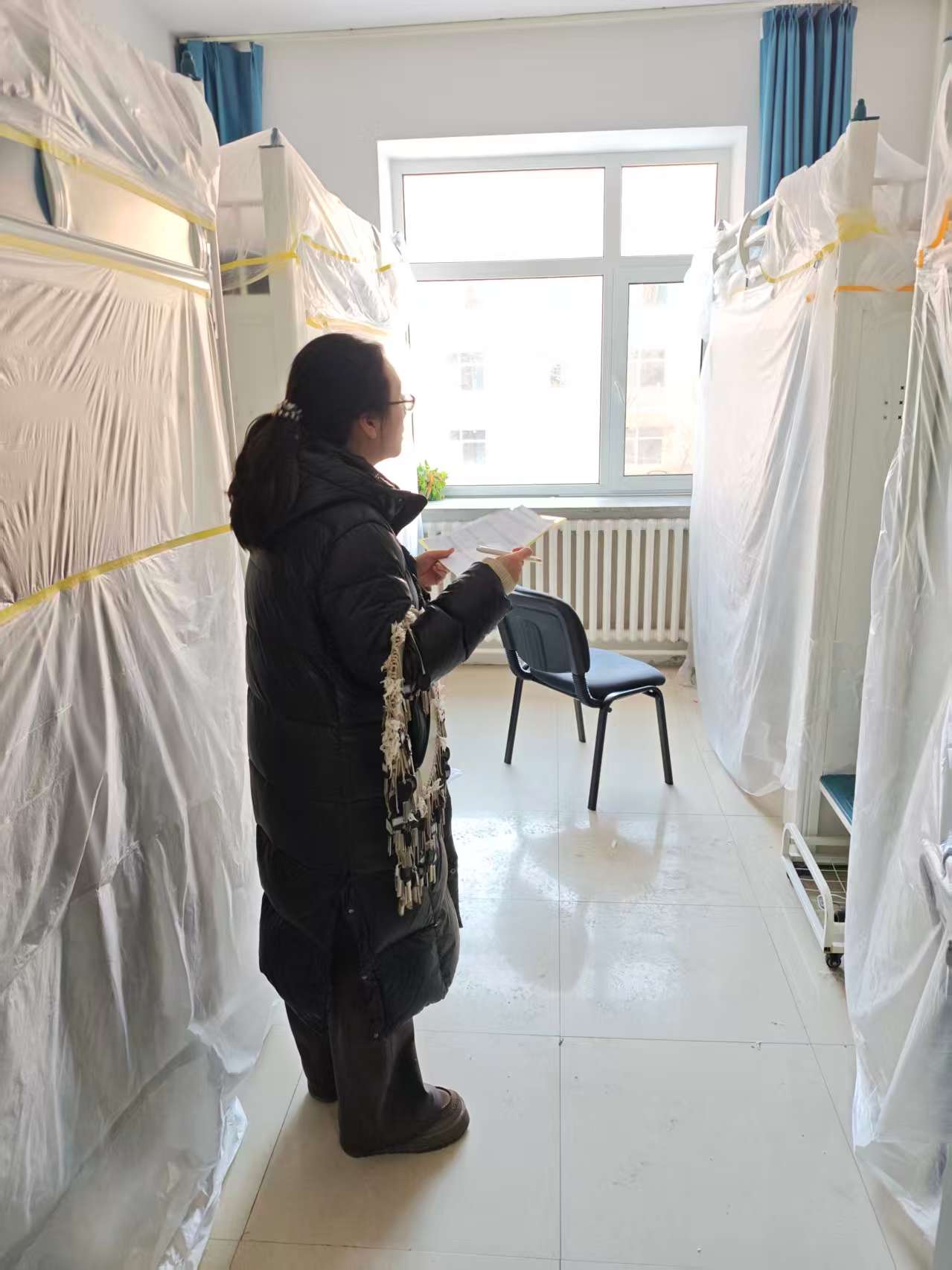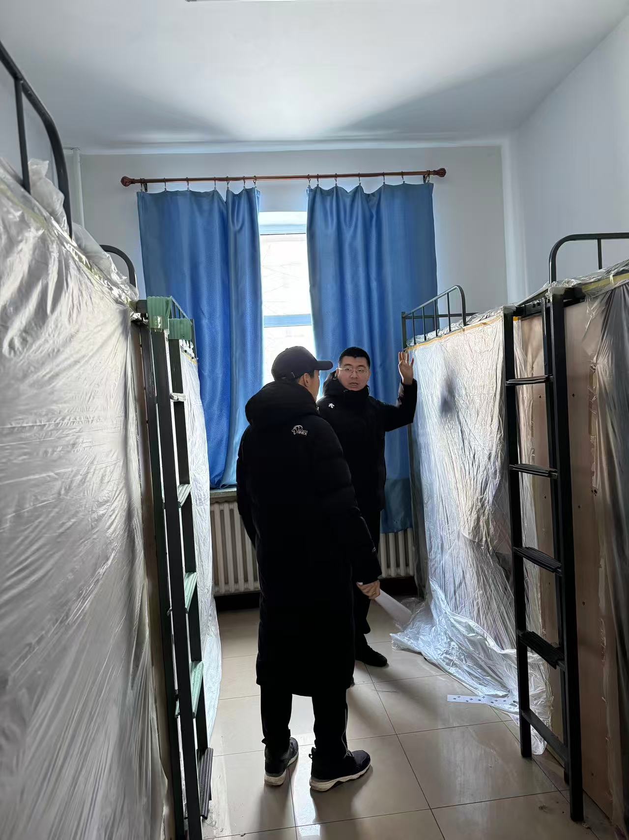 本次走访检查围绕工程施工准备与假期安全保障两方面展开。针对空调安装电气系统改造的要求,重点检查了员工个人物品整理情况:督促员工们将零散物品收纳至储物柜并上锁,贵重物品随身携带或妥善保管;逐一核查床帘等寝具是否拆除,床铺及周边空间是否清空,窗台物品是否收回,确保施工区域畅通无阻。针对北苑一公寓重点围绕宿舍用电安全、防火防盗、卫生环境等方面展开,对登记的留校员工进行确认。检查过程中,老师们逐一排查了违规电器使用、电源关闭、阳台杂物堆积等潜在风险,耐心叮嘱离校同学务必做到断水断电、关窗锁门,妥善保管个人贵重物品。