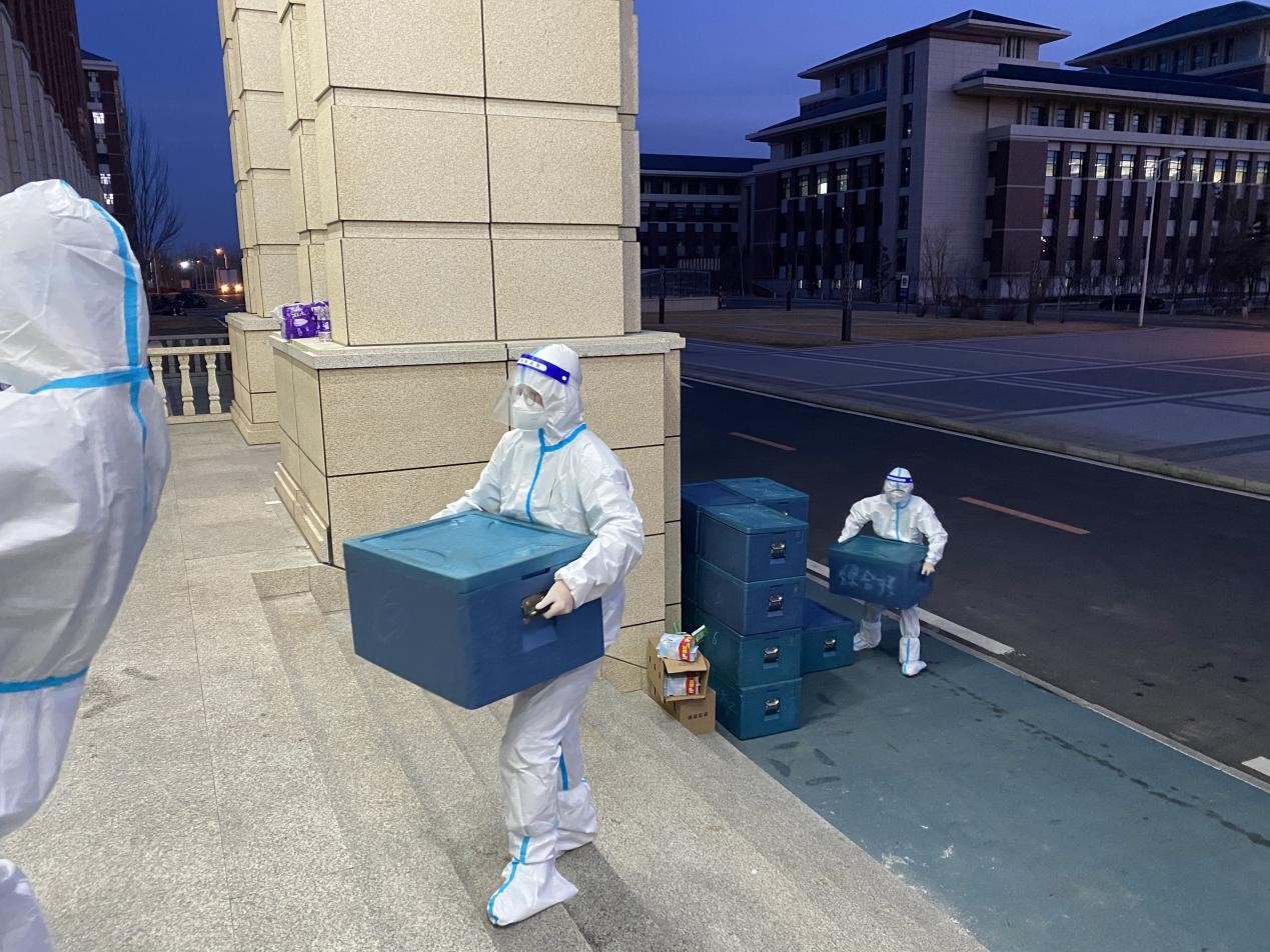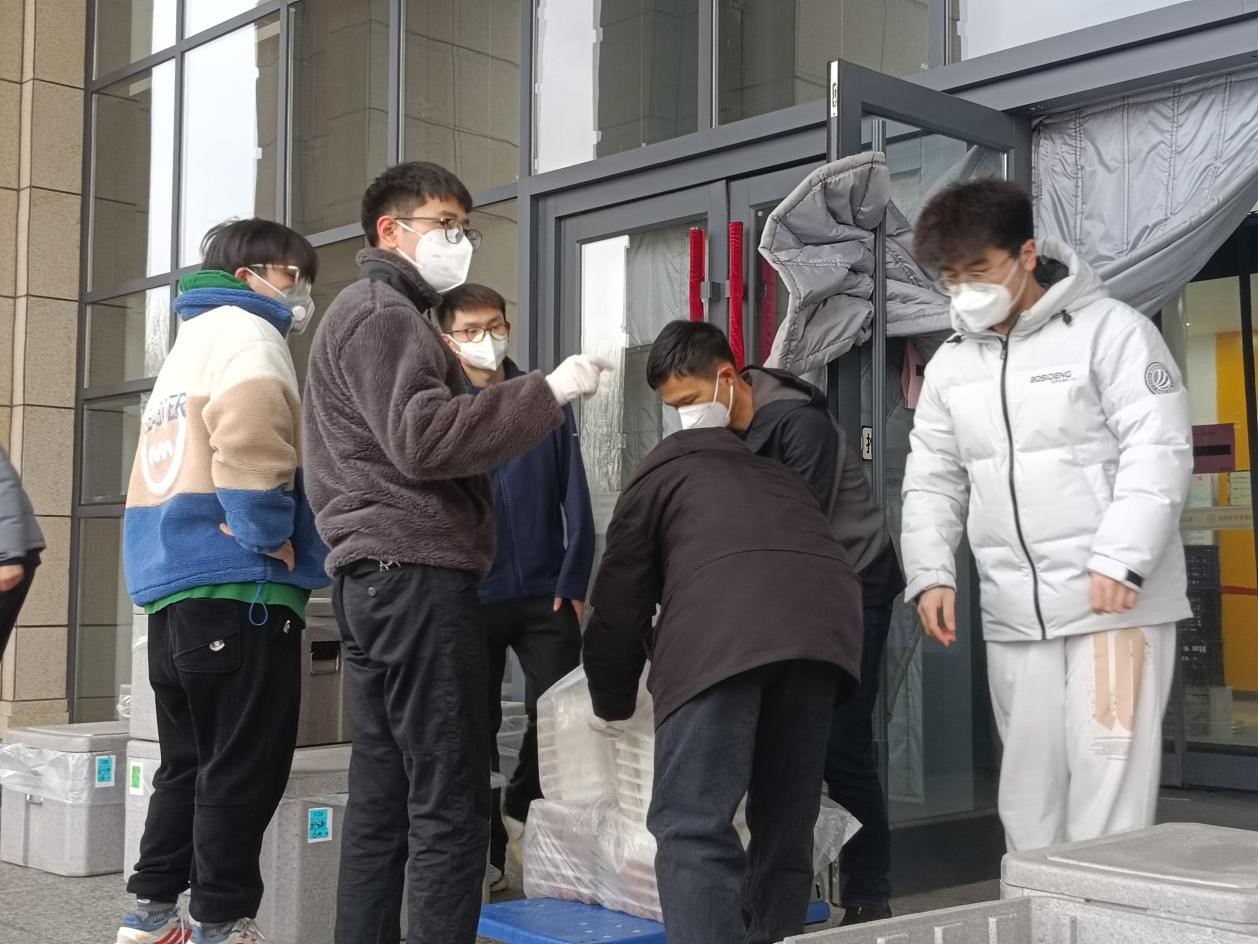 2022325日,公司研究生志愿者在辅导员老师的号召下主动承担起北苑四公寓全楼物资配送任务,迅速成立了三支志愿者队伍:第一支由2019级党支部书记潘得新带领的5人志愿先锋队,协助楼长负责全楼整体工作;第二支由2021级党支部书记高磊带领的30人纵向配餐志愿者队伍,负责将门口的所有物资转运分发给各楼层同学;第三支由122cc太阳成集团研会主席韩文强带领的30人楼层志愿者队伍,横向为公司内部同学服务。