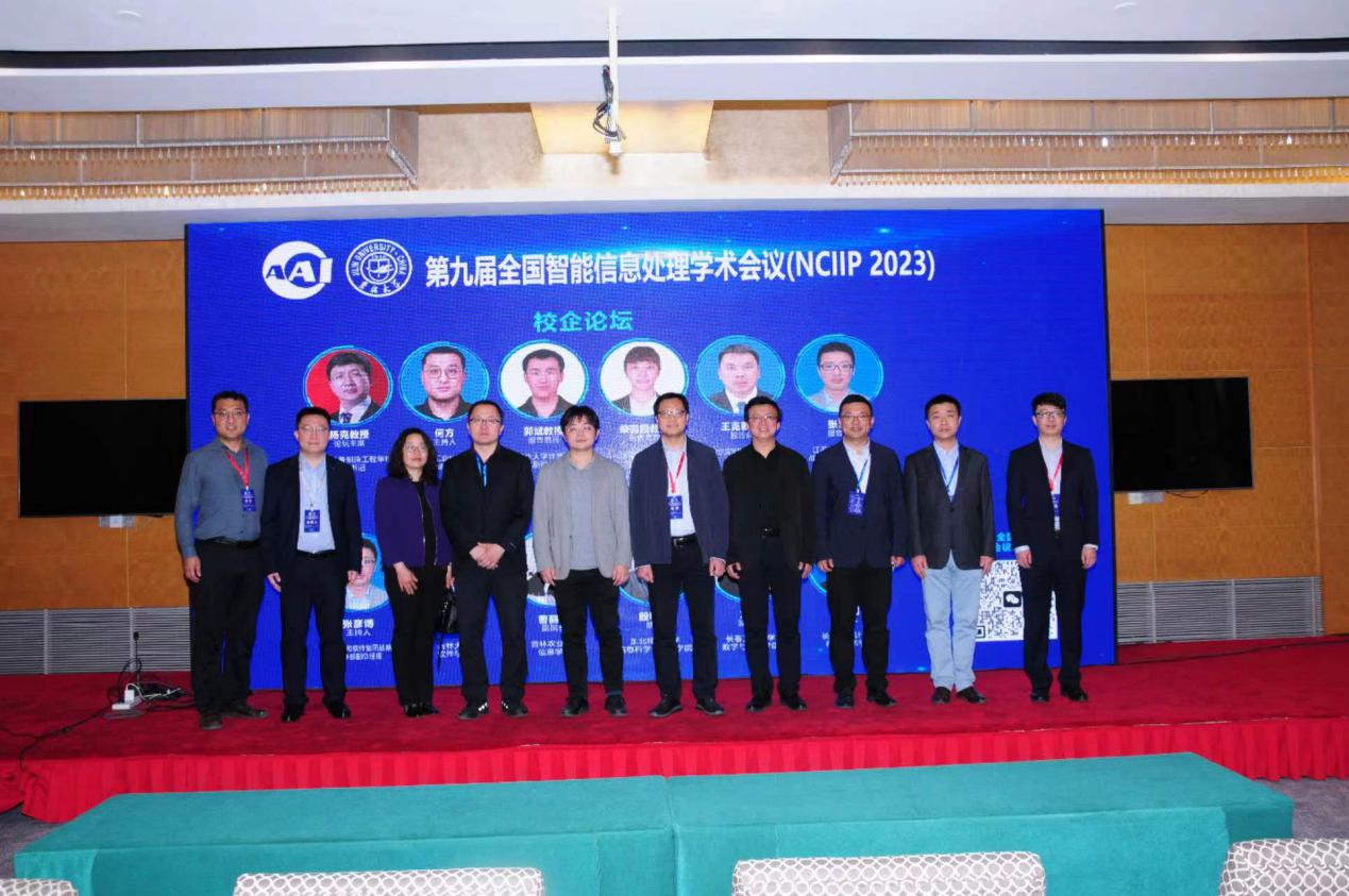 论坛结束时第九届全国智能信息处理学术会议大会程序主席、122cc太阳成集团计算机公司(122cc太阳成集团)经理杨博教授、校企论坛主席沈阳市装备制造工程公司党委书记杨克教授、大会出版主席、122cc太阳成集团副经理王恩教授、校企论坛主持人机械工业出版社营销经理何方上台表示祝贺,感谢多位专家学者们的精彩分享并合影留念。